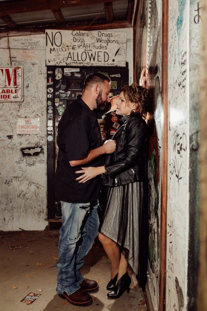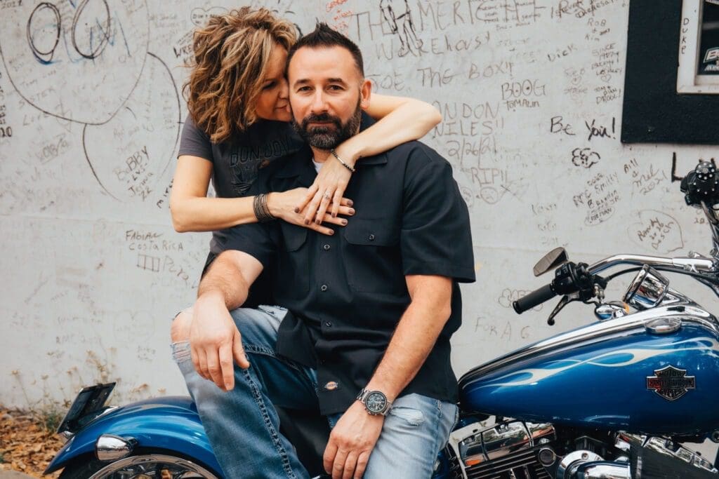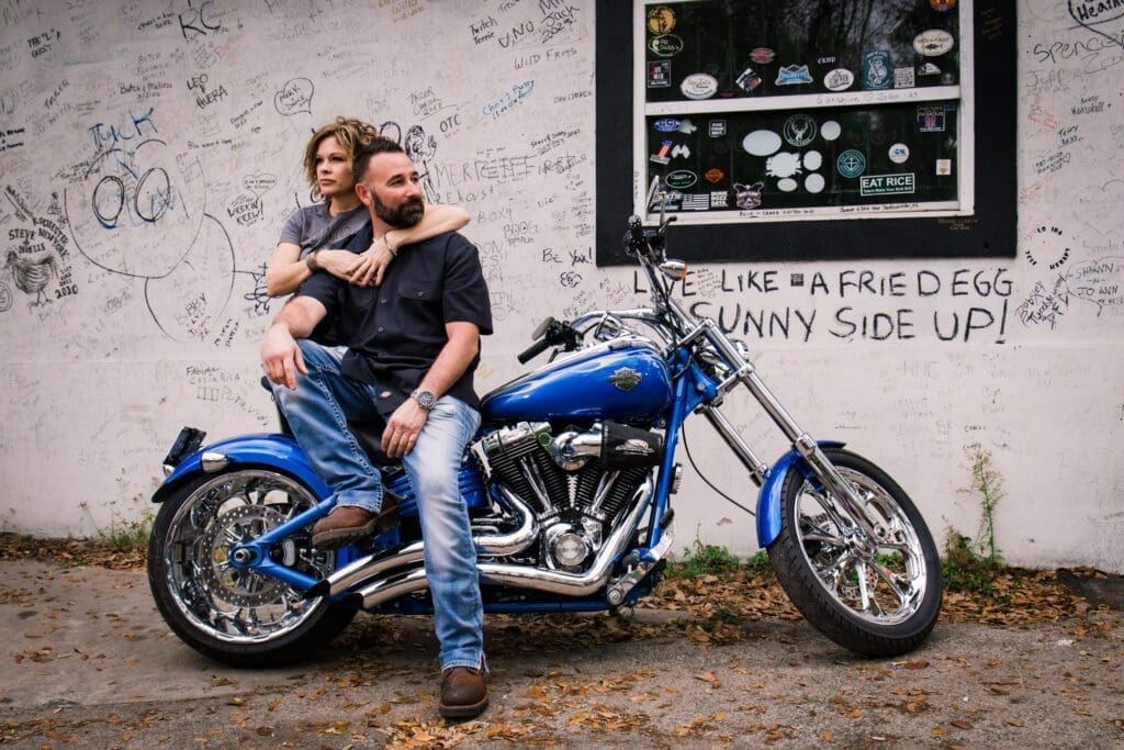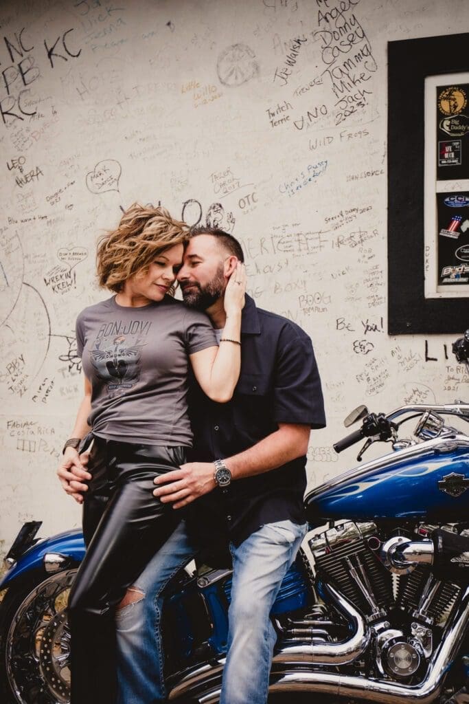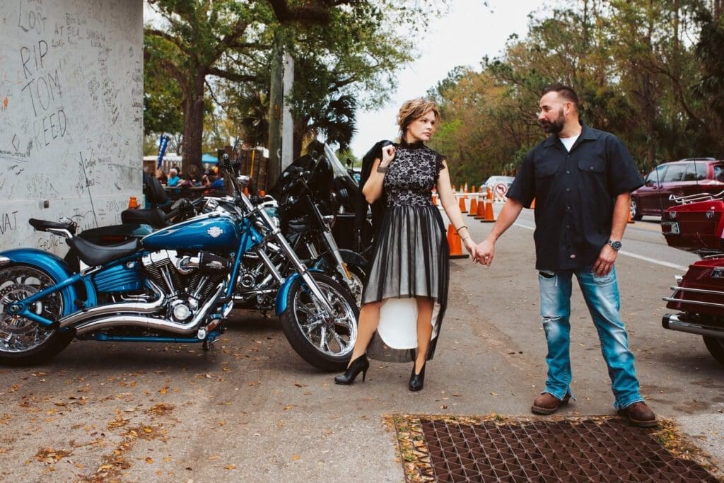 Hold on tight as I take you on a fun ride through a captivating engagement shoot that’s equal parts love and adventure. As a devoted engagement and wedding photographer in Central Florida, I had the exhilarating opportunity to capture Barb and Chris’s electric chemistry at The Cabbage Patch, a local biker hangout, right in the heart of Daytona Beach Bike Week.