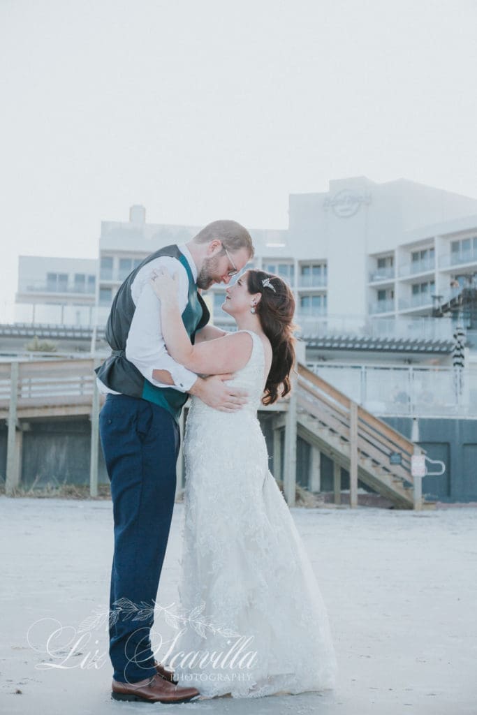 Michelle & Cody had their wedding day at the beautiful Hard Rock Hotel in Daytona Beach, and Liz Scavilla Photography was there to capture all the special moments. From their intimate and touching first touch and first look on Daytona Beach in front of the hotel, to the beautiful ceremony overlooking the Atlantic Ocean, to their fun-filled dancing and festivities during their reception, this wedding had it all. Here are a look at some of our favorite images we captured for this awesome couple: